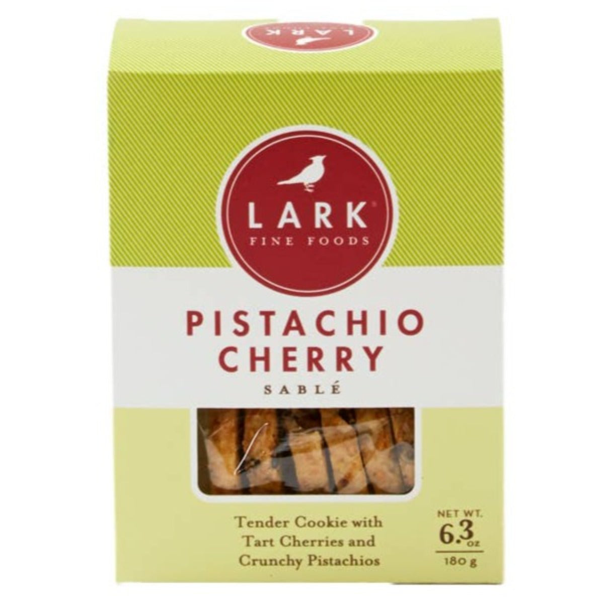 Pistachio Cherry Sable features a traditional French shortbread starring crunchy pistachios, dried tart cherries, and rimmed with sparkling sugar.